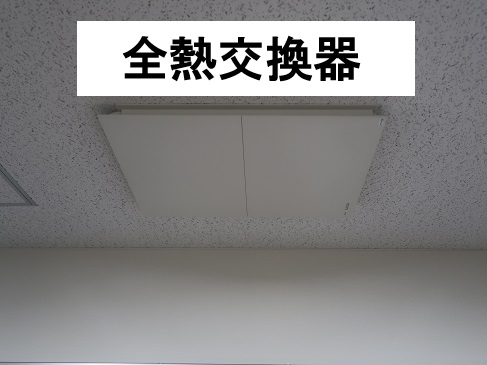 写真には、窓側の天井に、換気用の全熱交換器、あるいは空調機と思われるものが写っています。