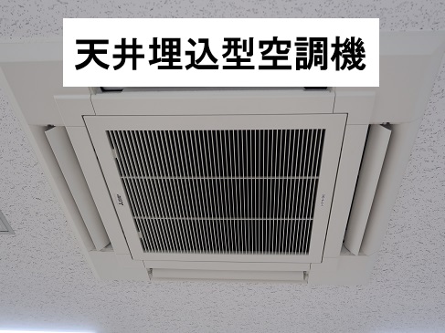 同じ2階の視聴覚室の天井には、室内空気を循環して温める空調機が天井に埋め込まれています。