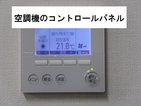 壁には、通常、空調機を調整するスイッチ、コントロールパネルがついています。