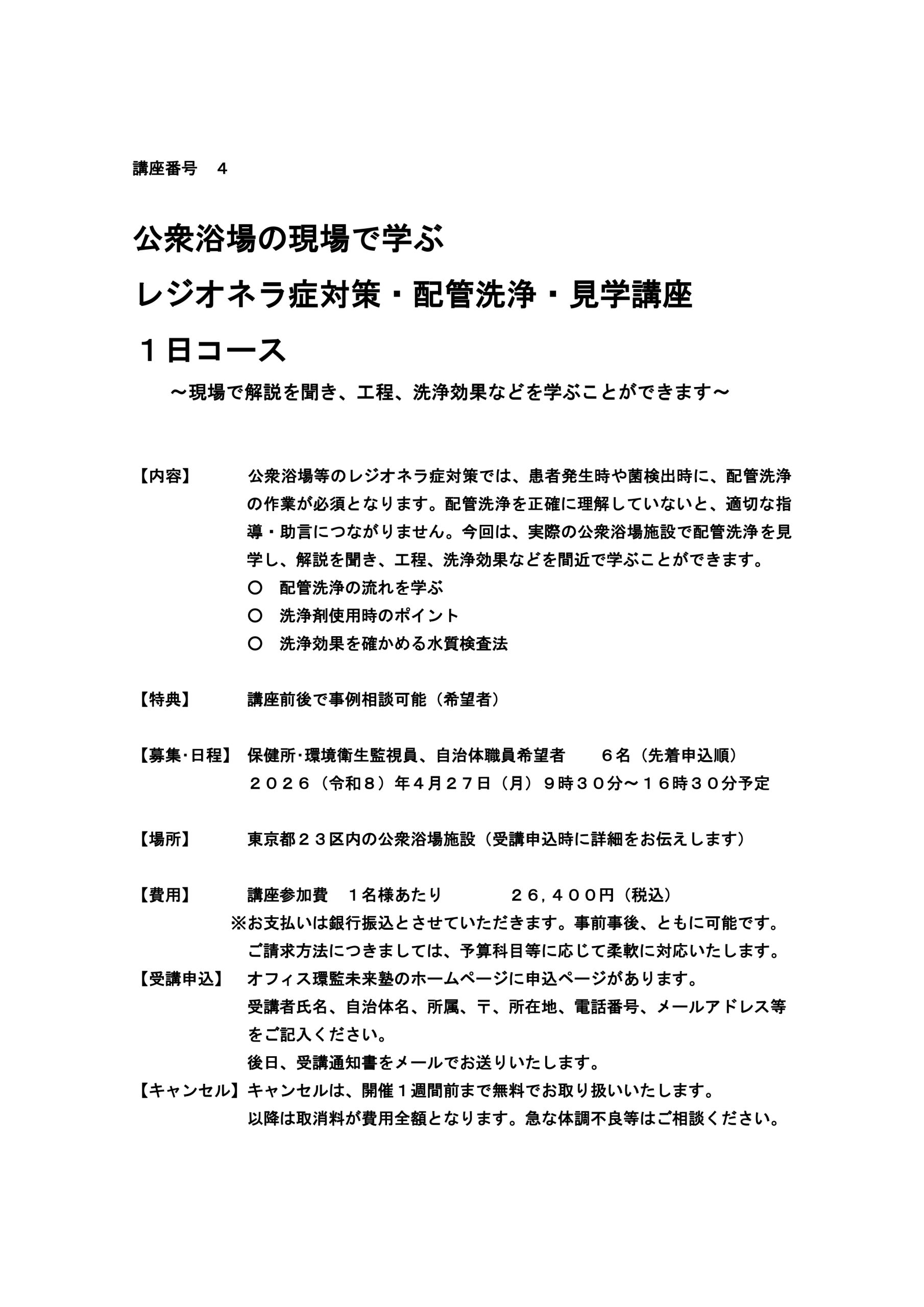 2026(令和8)年度のオフィス環監未来塾の研修講座の写真入り詳細をご覧いただけます。
